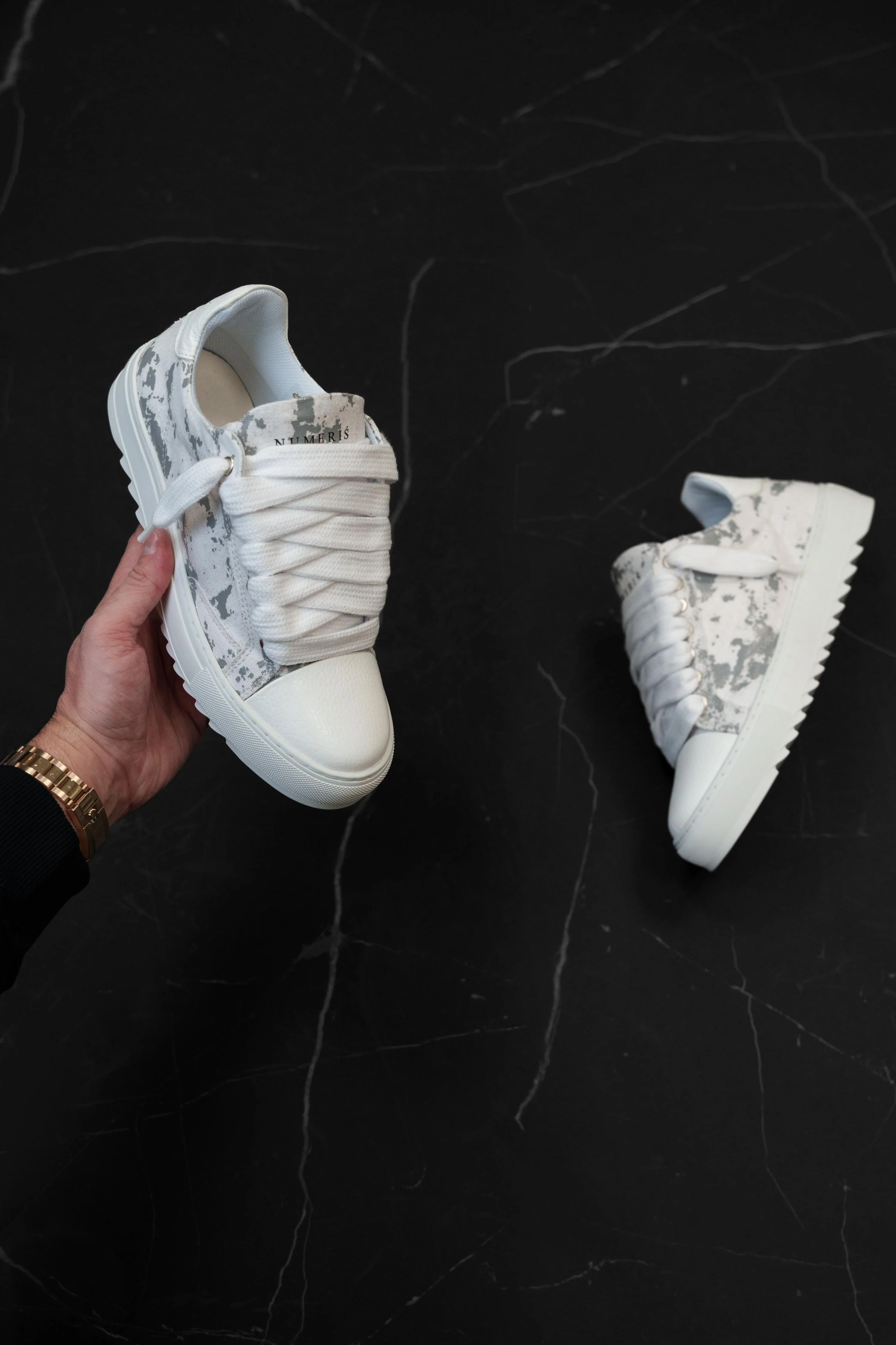Crafted with meticulous attention to detail, the bespoke hand-dyed canvas upper ensures that each pair is a unique work of art, as no two pairs will bear the same pattern. Complementing this distinctive feature is the signature crisp white pebbled leather toe cap, adding a touch of sophistication to the design. Inside, the trainer boasts a comfortable collar lining that enhances the overall wear experience. The finishing touches include our distinctive Numeriś branding on the heel.