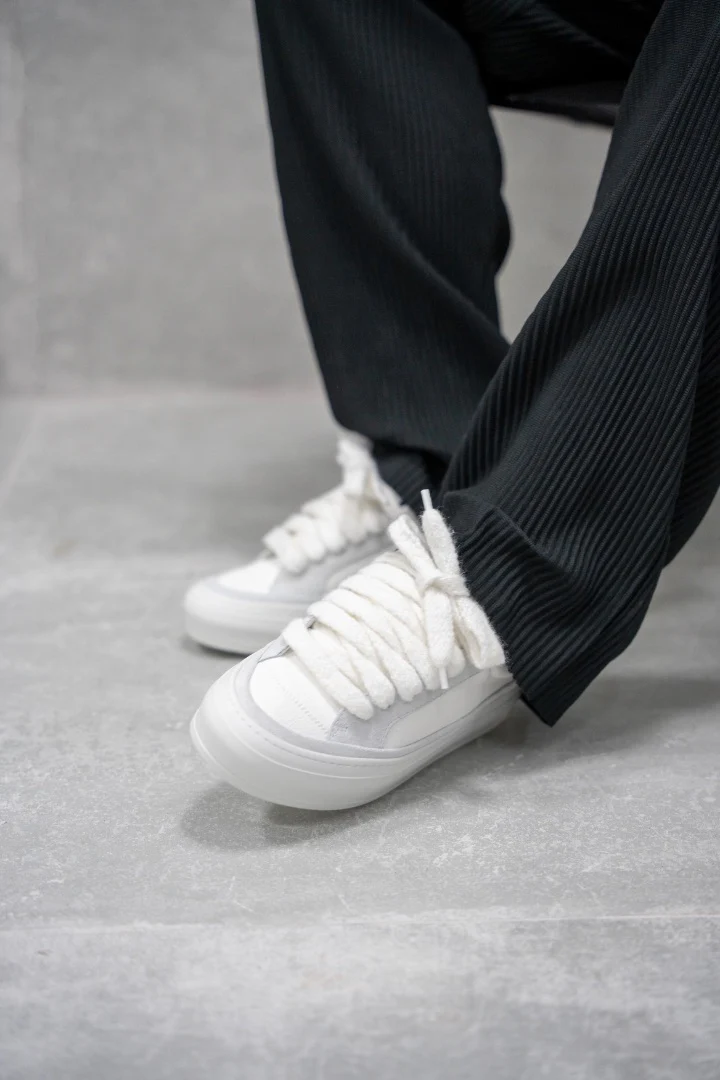 The Frost colourway features premium Italian suedes and leathers, ultra-soft white mohair laces, and our signature Numeriś tongue tag — all sitting atop a brand new, custom-engineered sole made exclusively for the Athena line.