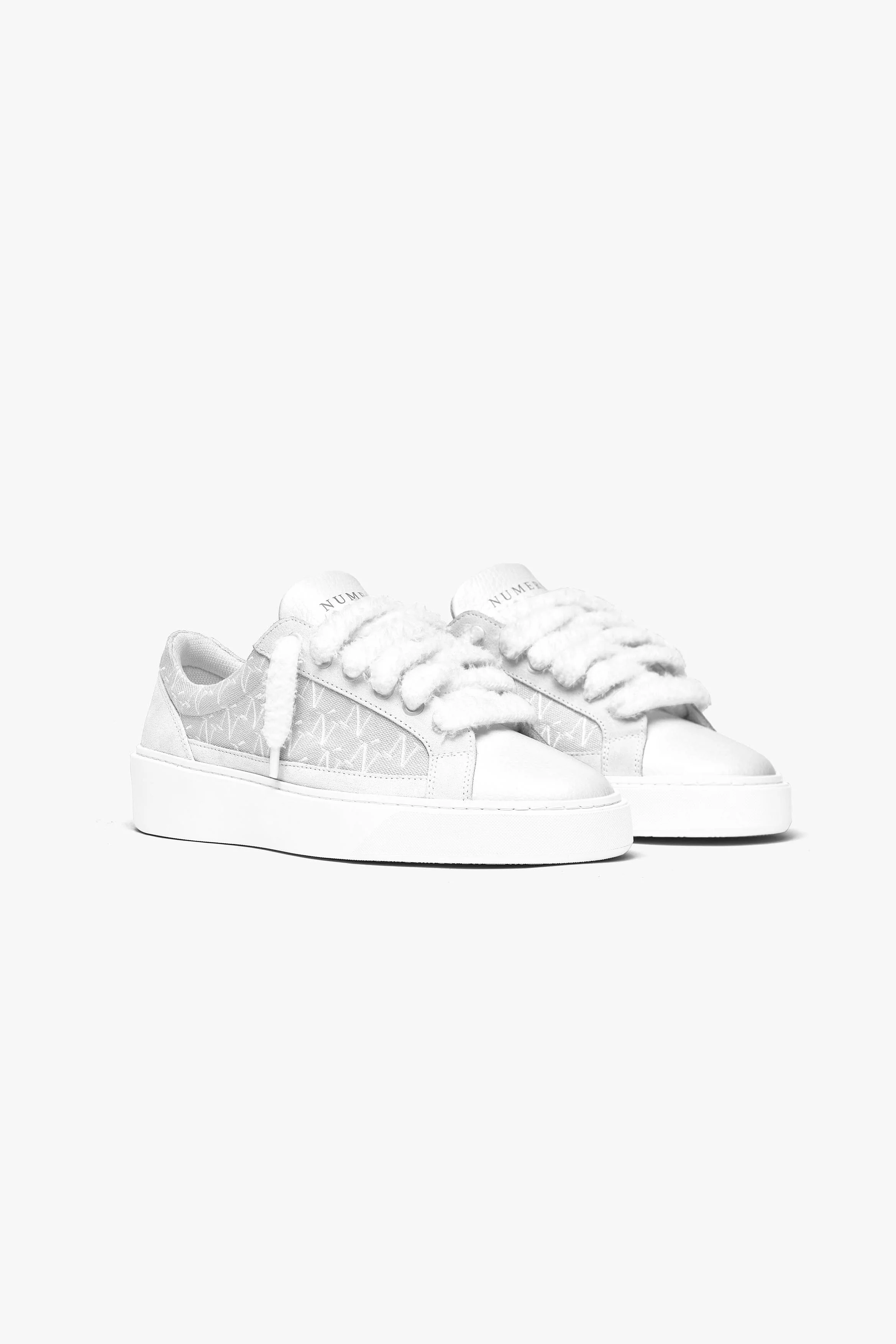 The Sigńet sneaker features Italian black suede, 20mm fluffy white laces, light grey canvas side panels which are accompanied by our sleek hand embroidered Ń monogram logo. The interior of the sneaker features grey collar lining providing unrivalled comfort. The upper rests perfectly on top of our brand new complex rubber sole, exclusively made for Sigńet. Our distinct silver logo is positioned across the tongue.